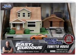 Tauche ein in die ikonische Welt von Fast & Furious mit dem realistischen Nanodiorama des Toretto House. Das Set umfasst ein zweistöckiges Haus mit detailliertem Dach, eine separate Garage, Auffahrt, Rasen, Büsche und Gehweg – alles auf einer stabilen Basis für bequemes Ausstellen.