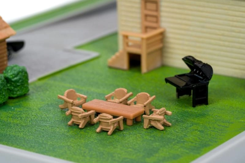 Inklusive 2 Nano-Metallautos im Diorama-Maßstab – Dodge Charger und Toyota Supra – mit frei laufenden Rädern und Gummireifen für sanfte Bewegung. Die Atmosphäre wird durch Grill und Gartenmöbel für realistische Szenen und Fotos abgerundet.