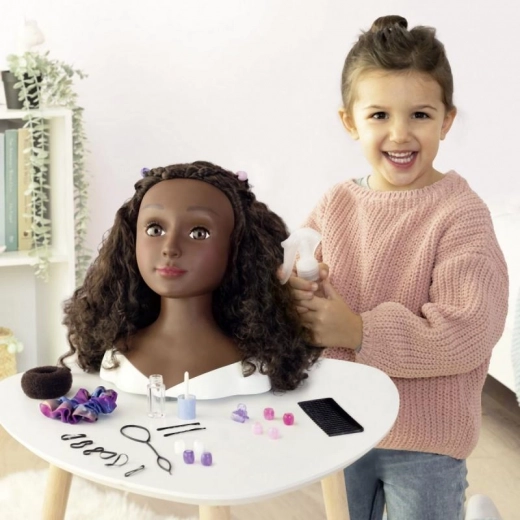 Dieser Afro-Frisierkopf ist ein großartiger Partner zum Üben von Zöpfen, Dutts und modernen Frisuren. Realistische, voluminöse Locken ermöglichen Kämmen, Flechten und Verzieren – und mit dem beiliegenden Zubehör gelingen dir Frisuren für jeden Anlass. Außerdem bietet er die unterhaltsame magische Lippenfunktion – tauche den beiliegenden Pinsel in kaltes Wasser und sieh zu, wie sich die Lippen wunderschön färben.