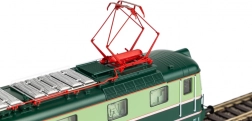 Zwei metallene Scherenstromabnehmer, runde Puffer sowie reichhaltig detaillierte Dach- und Gehäuseausrüstung sorgen für das vorbildgerechte Erscheinungsbild der ČSD-Lokomotive.