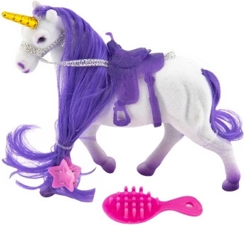Dieses elegante Einhorn erfreut jedes Kind, das magische Wesen und Fantasiewelten liebt. Dank der weichen, samtigen Oberfläche und der kämmbaren Mähne haben kleine Stylistinnen und Stylisten viel kreative Freude. Enthalten sind außerdem Zubehör zur Mähnenpflege und ein Sattel für bequeme Ausritte in der imaginären Welt.