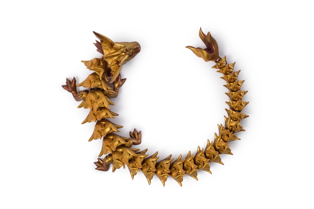 Detailreiche Schuppen, metallische Oberfläche und Segmente ermöglichen sanftes Biegen, Einrollen zu Ringen und eindrucksvolle Posen.