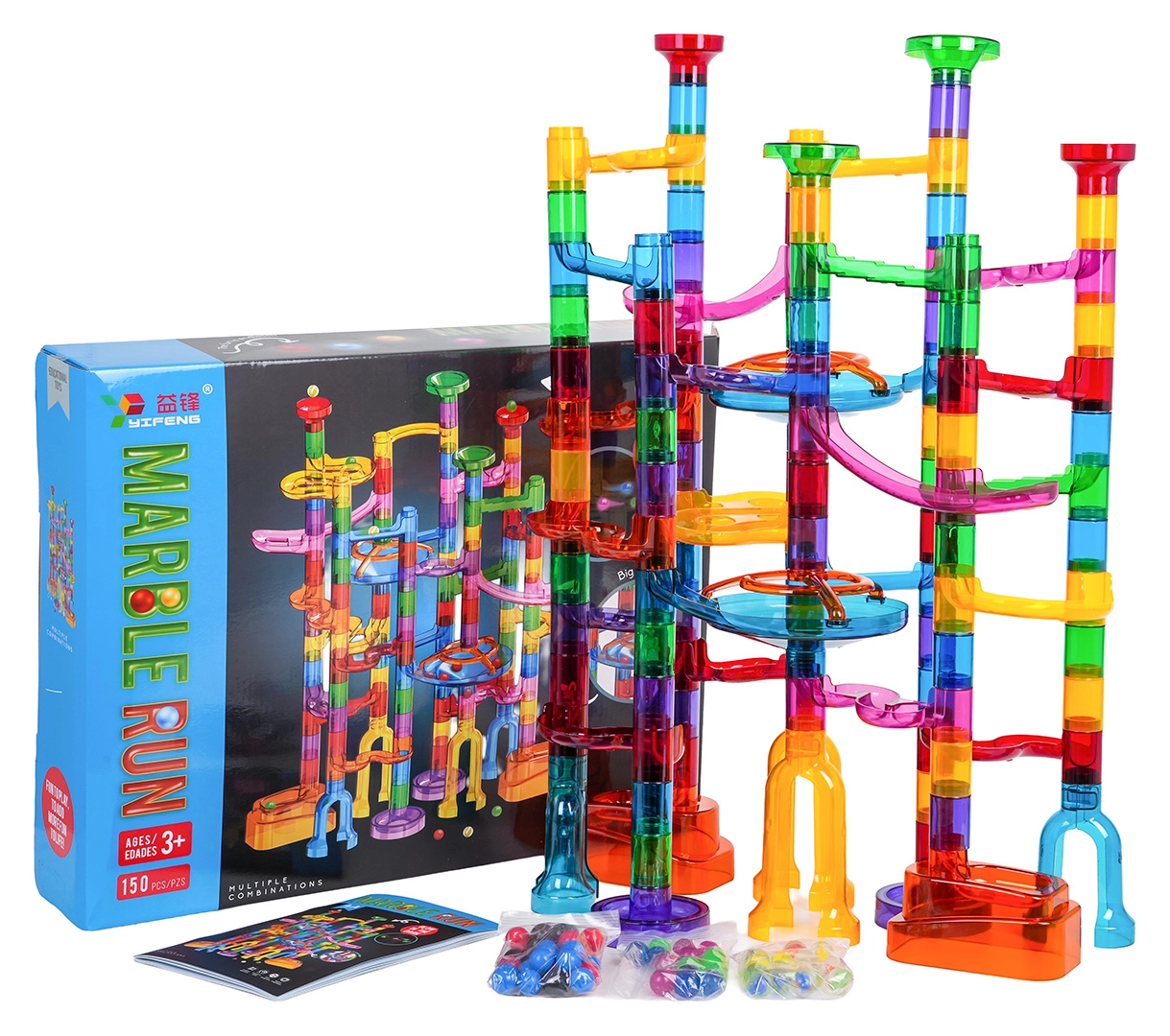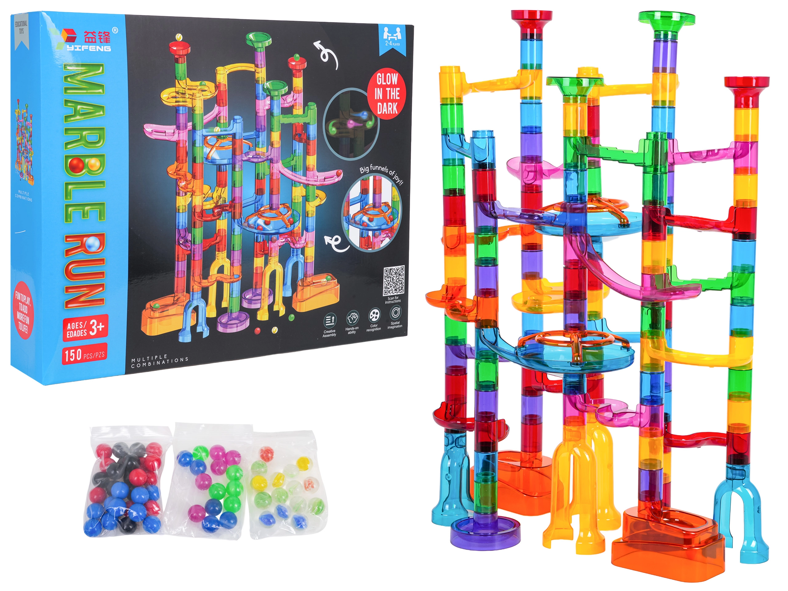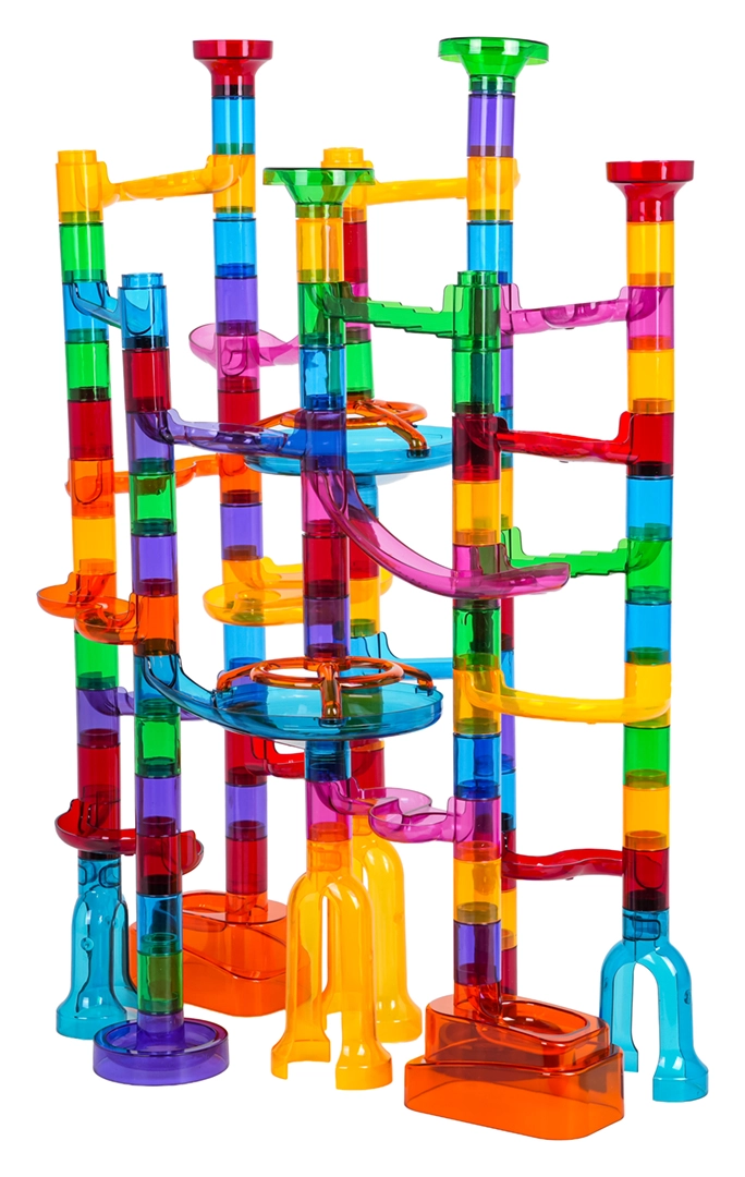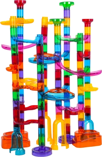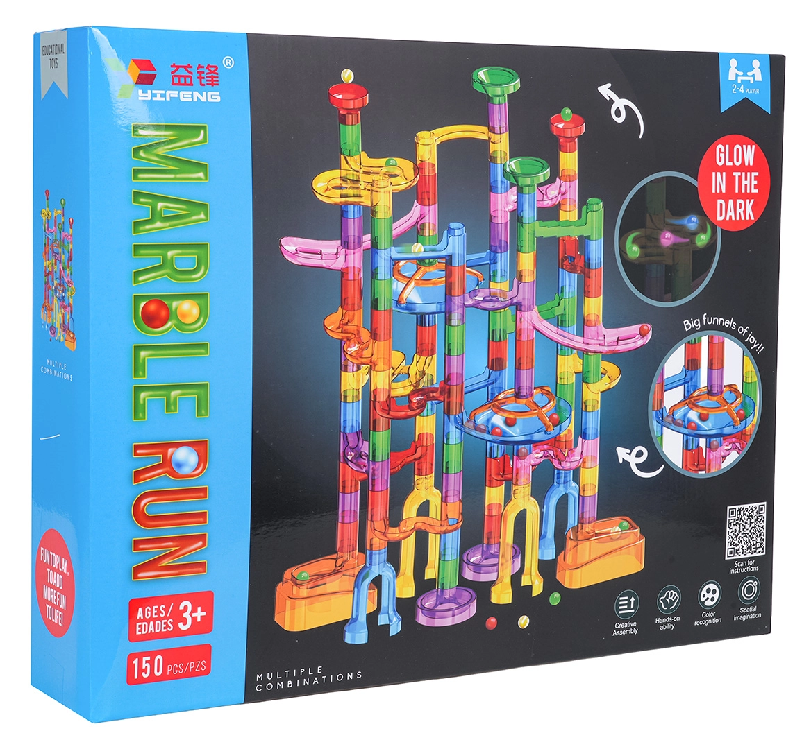 Baue eine stabile und farbenfrohe Konstruktion ganz nach deiner Fantasie und lass die Murmeln durch Spiralen, Kurven und Tunnel sausen. Leuchtende Murmeln verwandeln das Spielen im Dunkeln in ein magisches Erlebnis, und Kinder werden mit Freude neue Strecken und Rekorde ausprobieren.