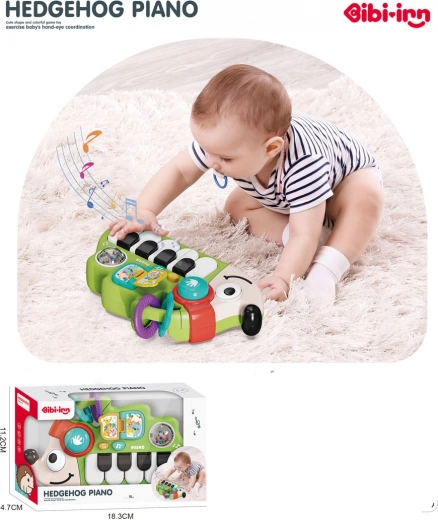 Führen Sie Ihr Kind mit dem niedlichen Klavier in Igel-Form an die Welt der Musik heran. Das Spielzeug begeistert durch lebendige Farben und eine sichere Ausführung, unterstützt die Entwicklung von Gehör, Auge-Hand-Koordination sowie Neugier. Über den Tasten befinden sich ein Modus-Schalter und eine Taste zum Starten der Melodien, darüber ein drehbares Büchlein, eine Trommel, eine Rassel mit bunten Kügelchen und ein praktischer Beißring.