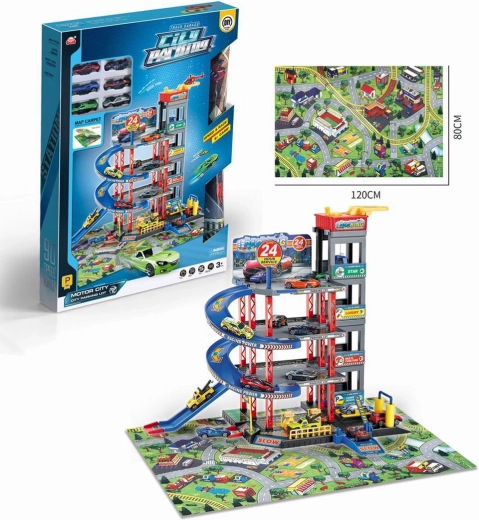 Entdecken Sie die Welt des Stadtverkehrs mit einem robusten mehrstöckigen Parkhaus, das Fantasie und Feinmotorik fördert. Kinder können die Autos mit einem manuellen Aufzug nach oben befördern, an der Tankstelle auftanken, in der Waschanlage reinigen oder auf der Hebebühne warten. Abfahrtsrampen verbinden die einzelnen Ebenen und sorgen für actionreiche Fahrten.