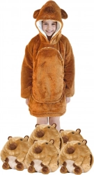 Diese Kinder-Hoodie-Decke mit Kapuze im Kapybara-Design fühlt sich an wie eine Umarmung, die von Kopf bis Fuß wärmt. Die innere Schicht aus Sherpa-Fleece ist flauschig und wärmend, während die Außenseite aus weichem Flanell zart auf der Haut ist. Dank des oversize Schnitts fühlen sich Kinder beim Fernsehen, Spielen und Ausruhen rundum wohl.