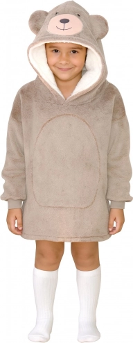 Der wärmende Kapuzen-Deckenhoodie Cozy Noxxiez im Bärendesign macht Entspannung zu purem Komfort. Innen wärmt flauschiger Sherpa-Fleece, außen begeistert extra weicher Flanell. Dank des oversize Schnitts zieht nichts, schränkt nicht ein und passt Kindern von 3 bis 6 Jahren wunderbar.