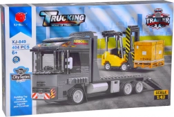 Dieser Technik-Bausatz bringt die Welt von Transport und Logistik ins Kinderzimmer. Bauen Sie einen Sattelzug mit Plattform und klappbaren Auffahrrampen, laden Sie den Gabelstapler auf die Ladefläche und gehen Sie „auf Tour“. Die realistische Farbgebung in Dunkelblau, Grau und Gelb sowie die beiliegenden Aufkleber verleihen den Modellen das authentische Aussehen von Nutzfahrzeugen.