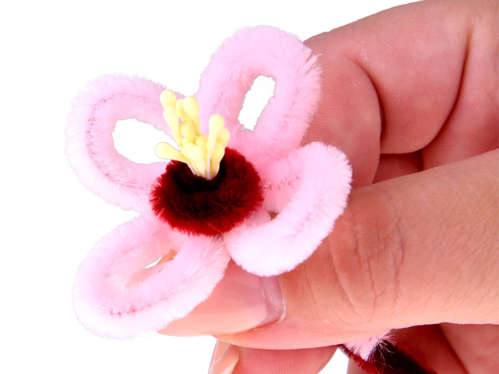 Die Pfeifenreiniger mit samtiger Oberfläche lassen sich leicht zu Blütenblättern, Stielen und Blättern formen. Sie ermöglichen präzises Modellieren und ein festes Verbinden der einzelnen Teile des Straußes – ganz ohne komplizierte Werkzeuge.