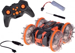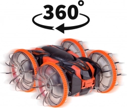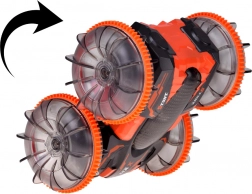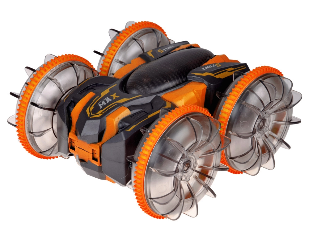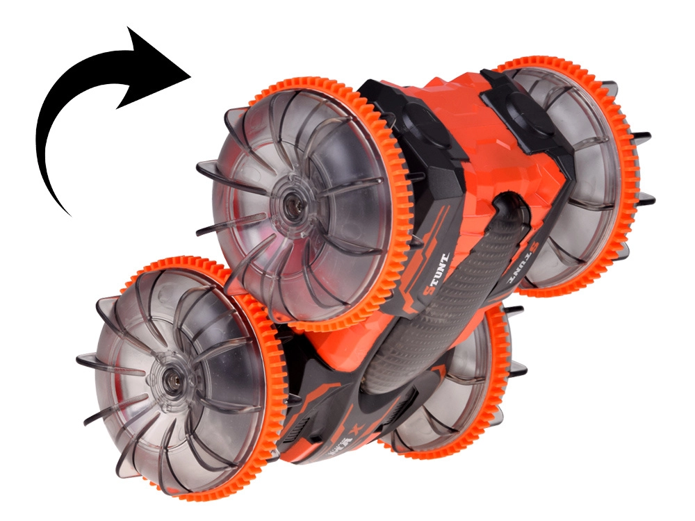 Erleben Sie actiongeladenes Fahren mit dem amphibischen Stunt-RC-Auto, das mit Rasen, Sand, Pflaster und sogar der Wasseroberfläche zurechtkommt. Große transparente Räder mit markantem Profil und LED-Beleuchtung verleihen jeder Fahrt Showeffekt und sicheren Grip. Dank 360°-Drehungen fährt das Auto sogar nach dem Überschlag auf der anderen Seite weiter.