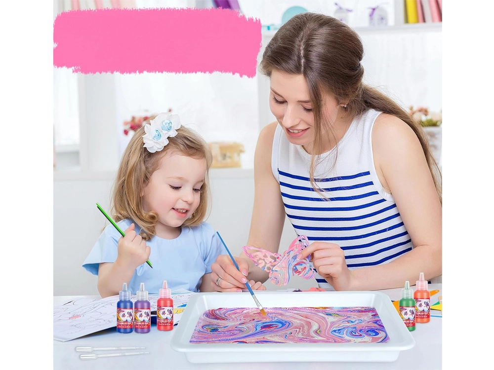 Entdecken Sie die Magie der traditionellen Ebru-Marmoriertechnik und gestalten Sie einzigartige Muster auf der Wasseroberfläche. Komplettes Kreativset mit 12 leuchtenden Farben, Wanne, Papieren und Werkzeugen für einfaches Gestalten zu Hause. Ideal für Kinder und Erwachsene, fördert Kreativität, Konzentration und feinmotorische Fähigkeiten.