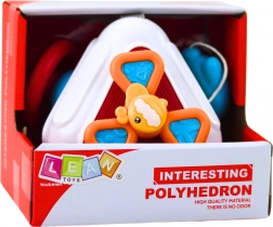 Am Würfel finden Sie eine drehbare Propeller-Scheibe, ein bewegliches Lenkrad mit Rassel, Drücktasten und Kugeln sowie ein abnehmbares Element an einer Schnur. Das Spiel mit den Elementen fördert logisches Denken, manuelle Geschicklichkeit und die natürliche Neugier des Kindes. Der Würfel kann auch aufgehängt werden, um die Nutzung zu erleichtern.