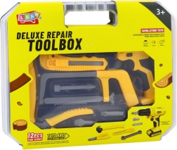 Unterstützen Sie die Fantasie und Fähigkeiten Ihres Kindes mit einem kompletten Set für das Rollenspiel als Reparateur. Im Mittelpunkt steht der batteriebetriebene Bohrer/Schraubendreher mit LED-Licht und Sound, der dank austauschbarer Aufsätze echtes Werkzeug imitiert. Alles besteht aus robustem und leichtem Kunststoff, ideal für sicheres Spielen.