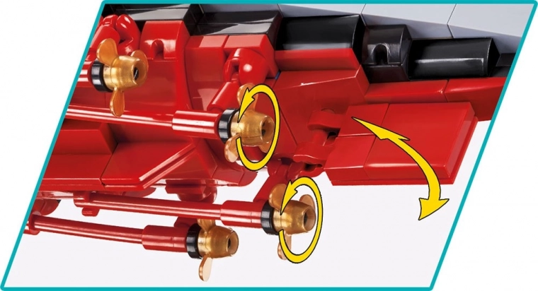 Drehbare Geschütztürme, verstellbare Kanonen und ein reich ausgestattetes Deck mit Booten, Masten und Ketten sorgen für ein realistisches Erscheinungsbild und Spielspaß nach dem Aufbau.