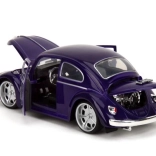 Entdecken Sie den ikonischen Look des klassischen Beetle in hochwertiger Metallausführung, die Sammler und Popkultur-Fans gleichermaßen begeistert. Dieses detailreiche Modell bietet realistische Proportionen, verchromte Elemente und klare Linien der Karosserie in einem auffälligen violetten Finish.