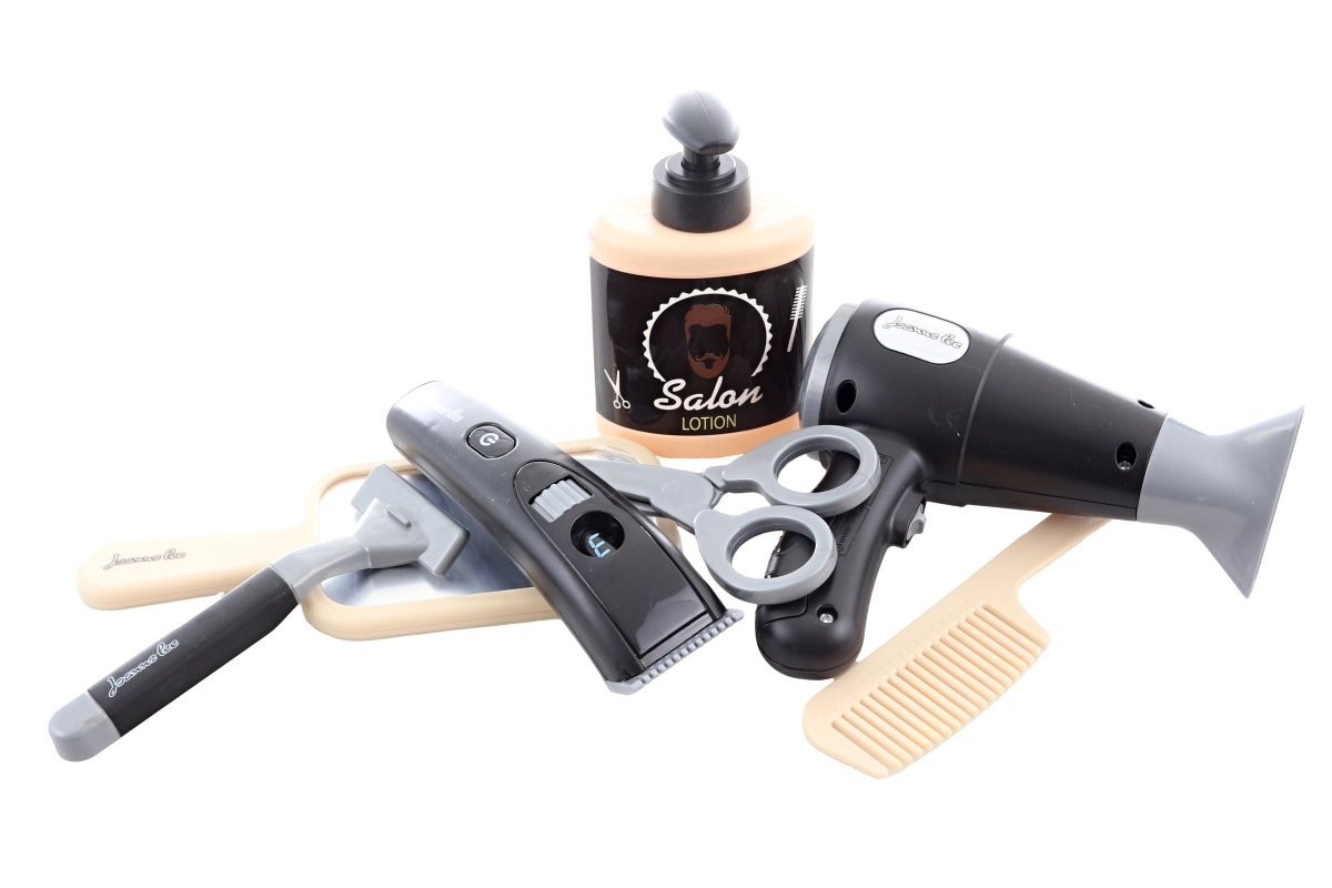 Schenken Sie Kindern ein realistisches Erlebnis eines Friseursalons. Dieses Friseursset umfasst einen praktischen Stoffgürtel zur übersichtlichen Aufbewahrung der Werkzeuge, umfangreiches Zubehör und einen batteriebetriebenen Föhn, der beim Einschalten leuchtet und Geräusche erzeugt und so das Gefühl echter Arbeit im Salon verstärkt.