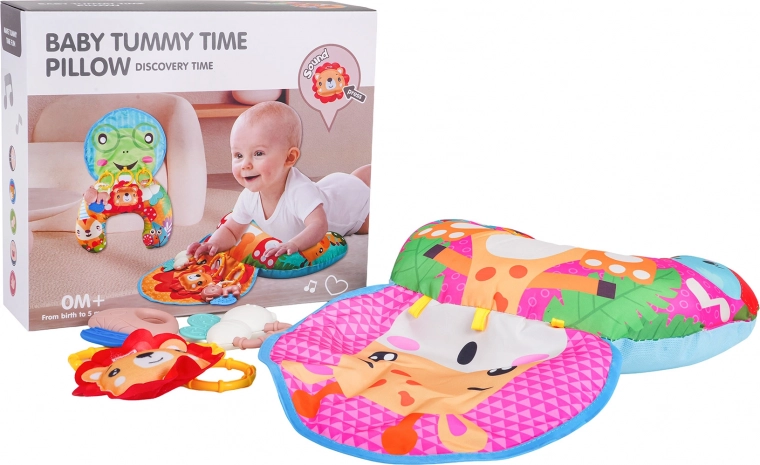Dieses multifunktionale sensorische Kissen für die Kleinsten eignet sich ideal für tägliches Spielen und Ausruhen. In der Bauchlage bietet es stabile Unterstützung, die beim Stärken der Nacken- und Rückenmuskulatur hilft. Für sitzende Kinder dient es als weiche Unterlage und später auch als bequemes Nackenhörnchen für Autositz oder Kinderwagen.