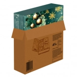 Robuster laminierter Karton in grün-goldener Kombination und ein Stoffband machen ihn zu einem dekorativen Element der Weihnachtszeit. Sieht großartig unter dem Baum und auf der Kommode aus.