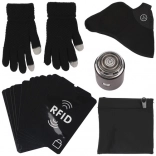 Weihnachtskrawatte, Socken, Santa-Mütze, funkelnde Fliege, Domino, Rollbandmaß, Poker-Zubehör, Kleiderhaken, Brillenhalter, Touch-Handschuhe, Wintermaske, Sportgürtel mit Tasche, Kartenetui, Rasierer, USB‑C‑Ventilator, Handyhalter, 3‑in‑1‑Sicherheits­hammer, Stirnlampe, Handyständer, Cutter-Messer, Lade-Set, Edelstahl-Schnapsgläser, Schnurrbart-Set, Profiltiefenlehre