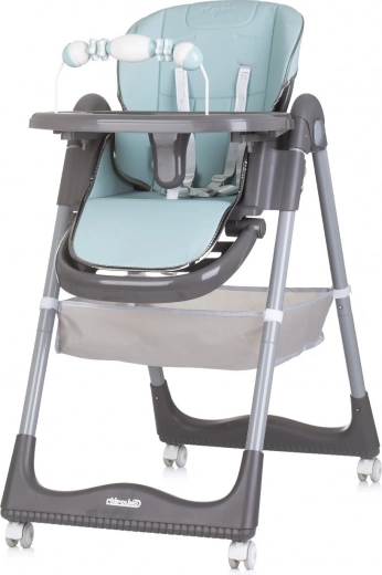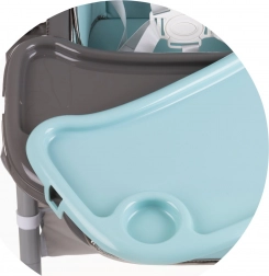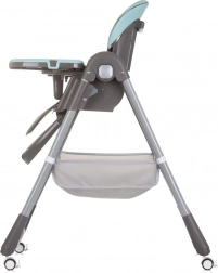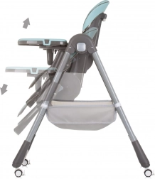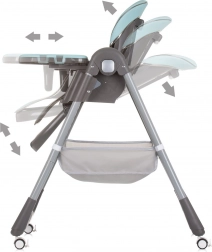 Das doppelte Tablett mit abnehmbarem Oberteil erleichtert die Pflege, und die Verstellung in 4 Positionen passt sich jeder Situation an. Der Spielbogen mit Spielzeug unterhält das Baby, während Sie in Ruhe den Tisch decken können. Vier Rollen erleichtern das Umsetzen in der Wohnung, und der Aufbewahrungskorb hält alle notwendigen Kleinigkeiten griffbereit. Nach dem Essen lässt sich der Stuhl schnell und kompakt zusammenklappen, um Platz zu sparen.
