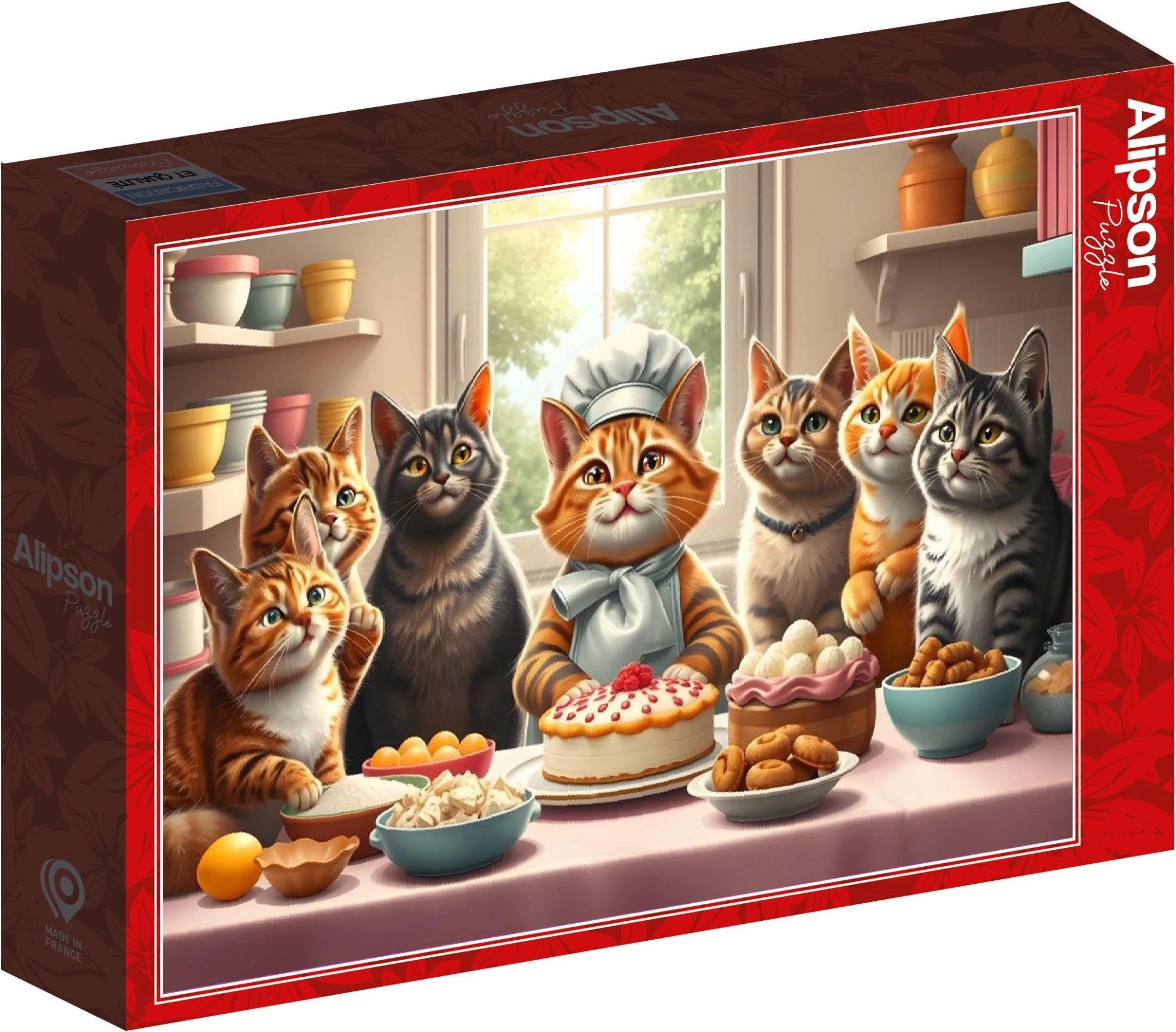 Das bezaubernde Motiv der Katzenbäckerinnen sorgt für stundenlangen Spaß und Erholung. Das Puzzle mit 1000 Teilen ist perfekt für Tierliebhaber, gemeinsames Puzzeln in der Familie und auch als Dekoration nach dem Einrahmen. Dank des Standardformats von 69 × 47,8 cm nach dem Zusammenlegen finden Sie leicht einen passenden Rahmen.