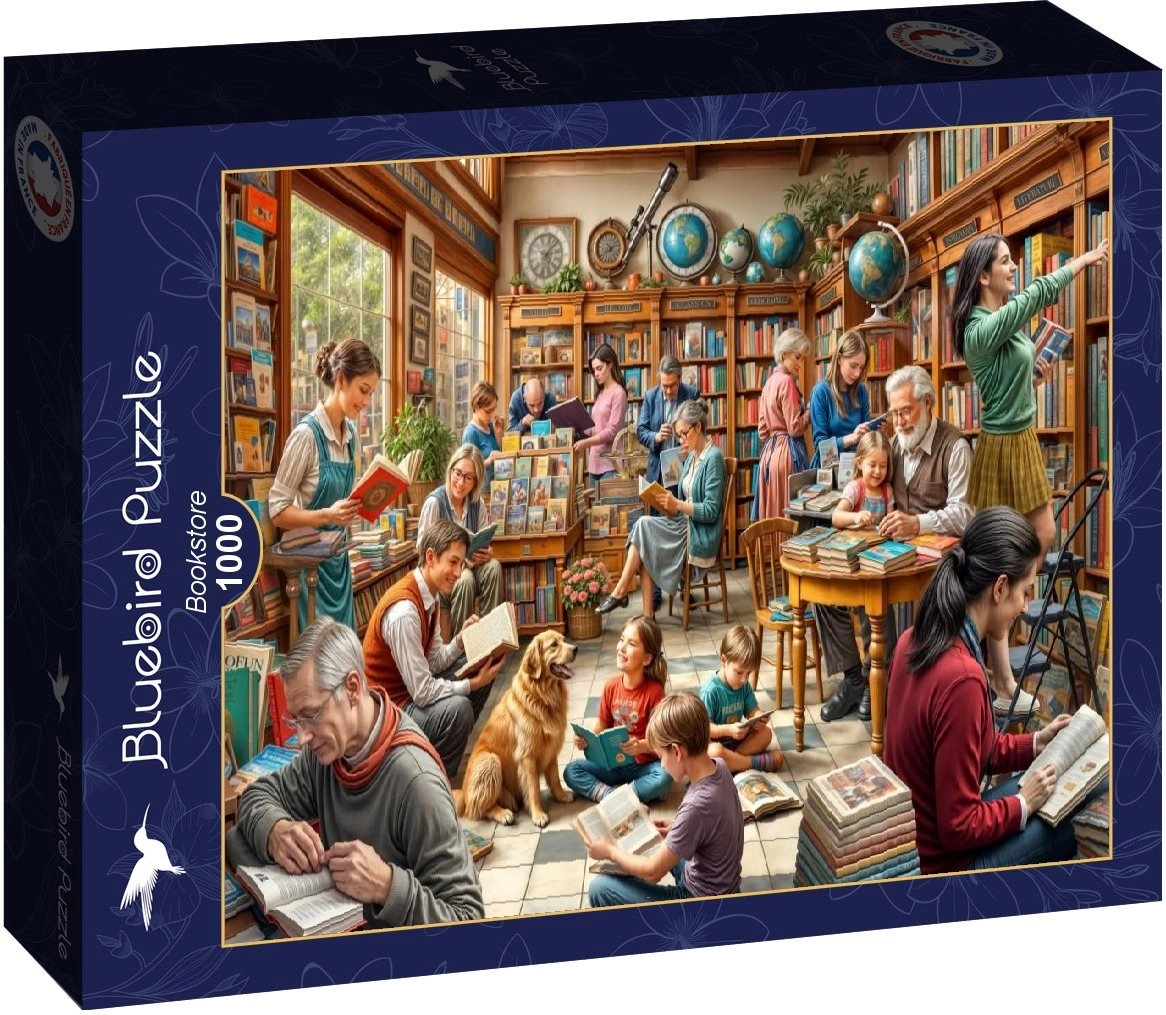 Das BLUEBIRD Puzzle mit dem Motiv einer gemütlichen Buchhandlung ist ideal für alle Liebhaber von Büchern und Puzzles. Dank präzise gearbeiteter Teile und des attraktiven Motivs genießen Sie stundenlangen Spaß, der Ihre Konzentration fördert und Erholung vom Alltagsstress bringt.