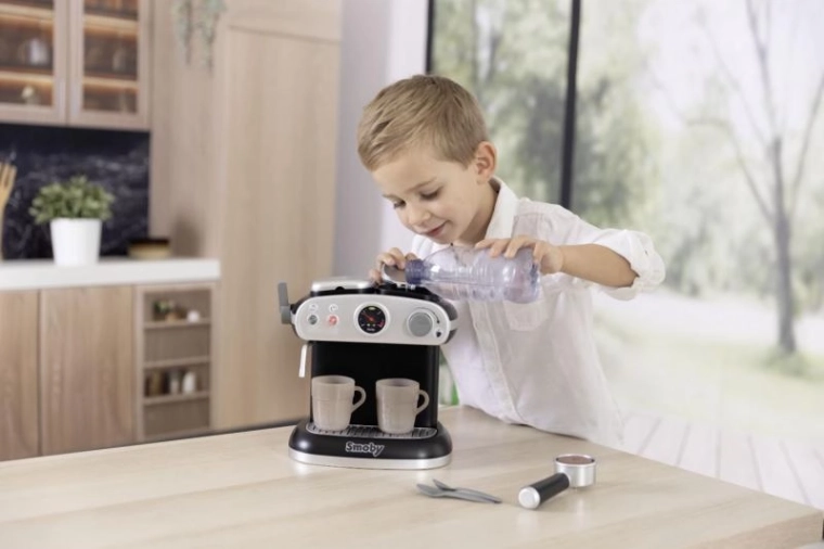 Holen Sie die Kinder in die duftende Café-Welt mit der kompakten Kinder-Espressomaschine, die aussieht und funktioniert wie eine echte. Die realistischen Licht- und Soundeffekte fördern die Fantasie und soziale Fähigkeiten beim Spielen. Die magischen Tassen, die bei Kontakt mit kaltem Wasser die Farbe wechseln, sorgen bei jedem „Shot“ für eine kleine Show.