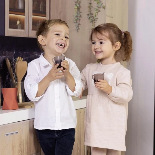 Das praktische Set umfasst 2 Tassen, 2 Löffel und 2 Kaffeekapseln, sodass Kinder auch Freunde oder Geschwister bedienen können. Die kompakten Maße 16,5 × 21 × 21,5 cm stellen sicher, dass die Maschine auf jede Kinderküchen-Theke passt.