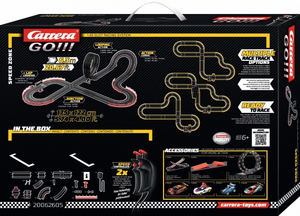 Dank des cleveren Klammer-Systems gelingt Auf- und Umbau schnell und einfach. Looping, Steilwand, Kurven und Kreuzung liefern Adrenalin und Spaß für Kinder ab 6 Jahren und Erwachsene. Die detailliert bedruckten Modelle im Maßstab 1:43 verfügen über doppelte Kontaktbürsten und einen Magneten für hervorragende Haftung und sanfte Fahrten.