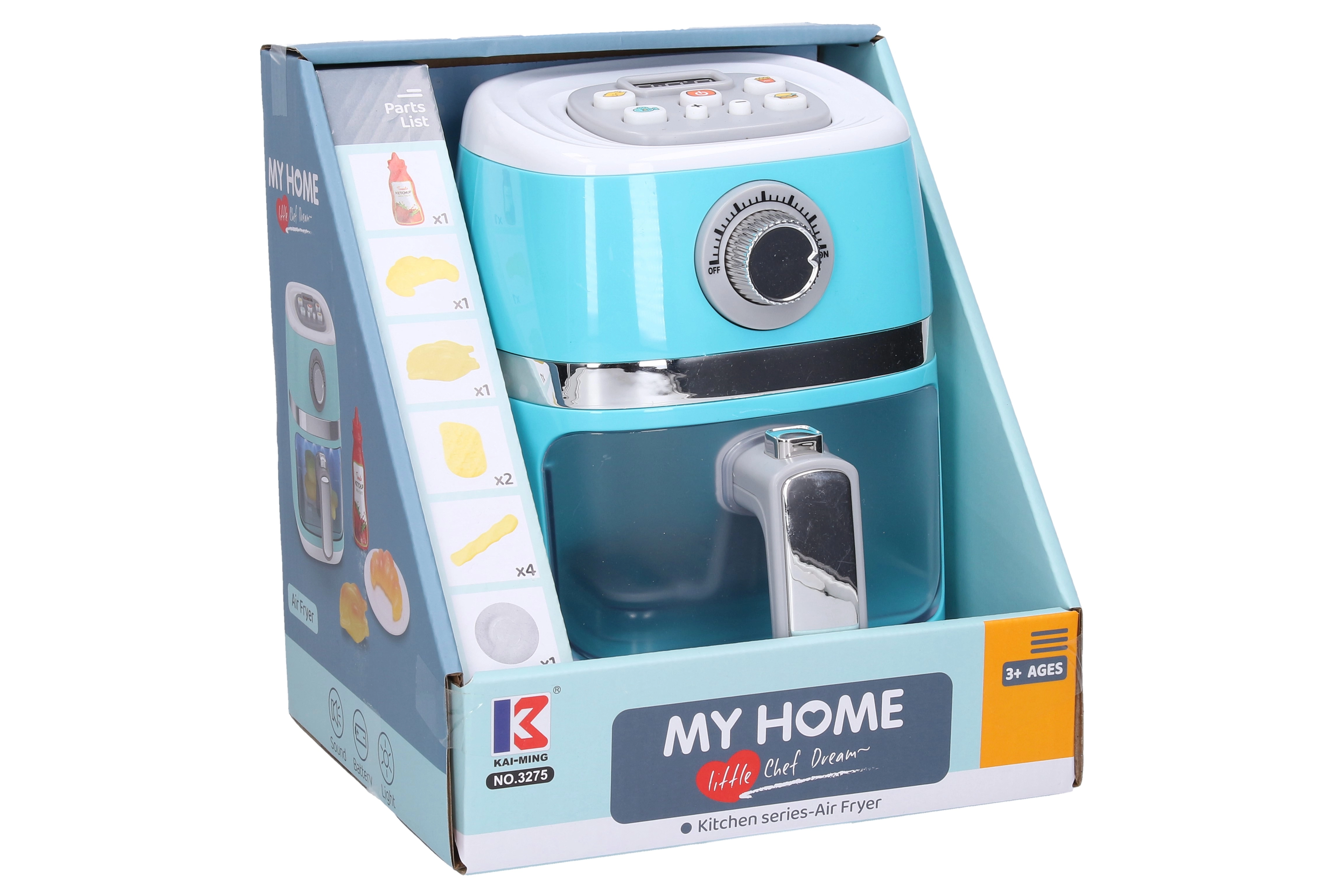 Das Spielzeug ist auf Sicherheit und einfache Handhabung ausgelegt. Die kompakten Abmessungen von 15 × 17 × 20 cm passen in jedes Kinderzimmer. Im Set sind zudem Lebensmittel-Attrappen enthalten, die nach dem Einlegen in die Fritteuse und dem Einschalten die Farbe wechseln – ganz wie beim echten Frittieren.