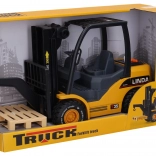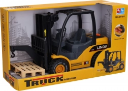 Das Modell fährt mit Schwungmasse, was eine gleichmäßige Bewegung ohne komplizierte Bedienung ermöglicht. Im Set finden Sie Stapler und Palette, sodass das Beladen und Entladen sofort beginnen kann. Die 3× AG13-Batterien sind enthalten – der Spielspaß kann direkt nach dem Auspacken starten.
