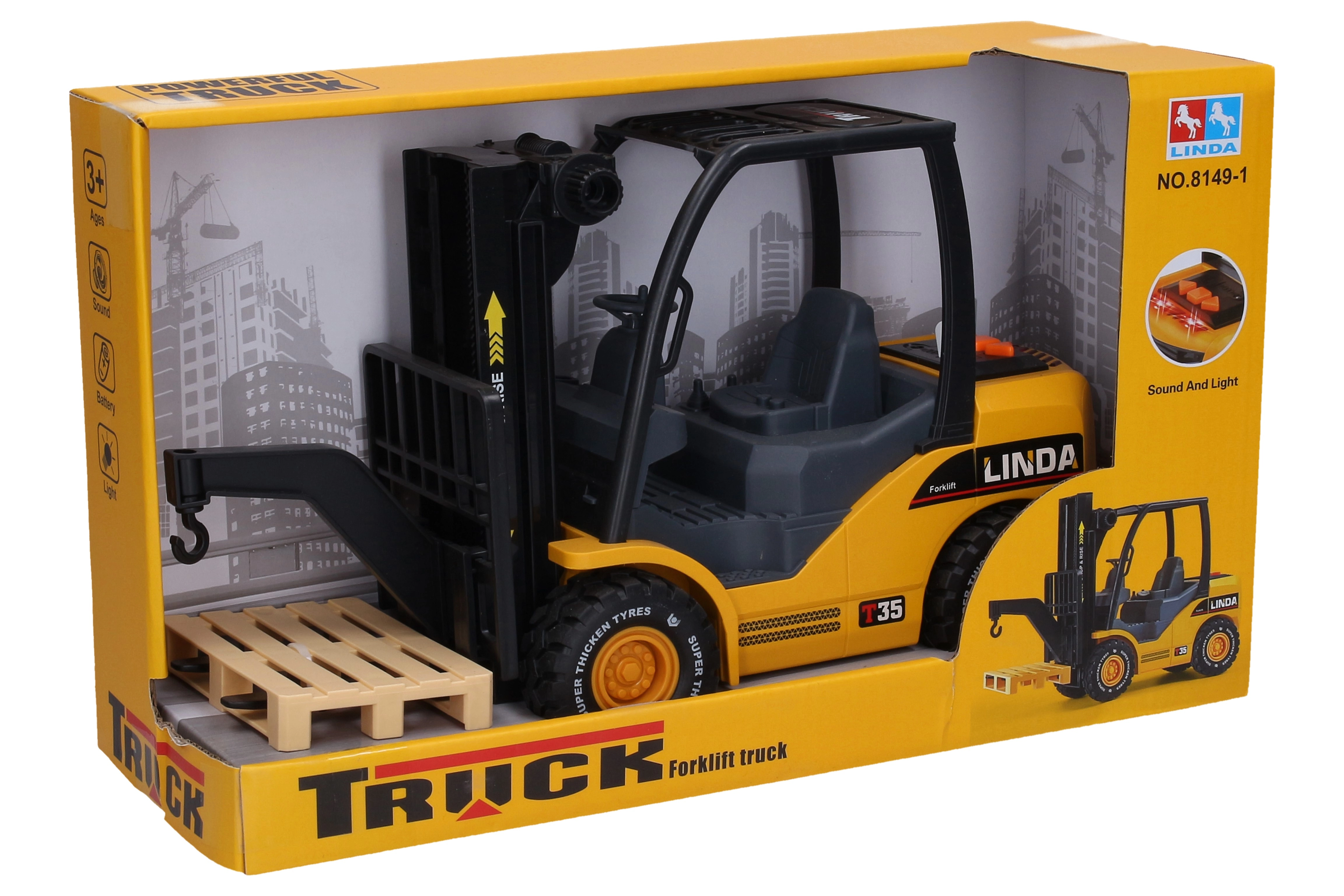 Dieser detailreich gestaltete Gabelstapler begeistert kleine Fans von Bau- und Lagerfahrzeugen. Dank der Licht- und Soundeffekte (Motor, Heben, Hupen) und dem manuellen Hub über das vordere Drehrad wirkt das Spiel besonders realistisch. Die Effekte werden über Tasten auf der Rückseite aktiviert, sodass Kinder alles bequem erreichen.