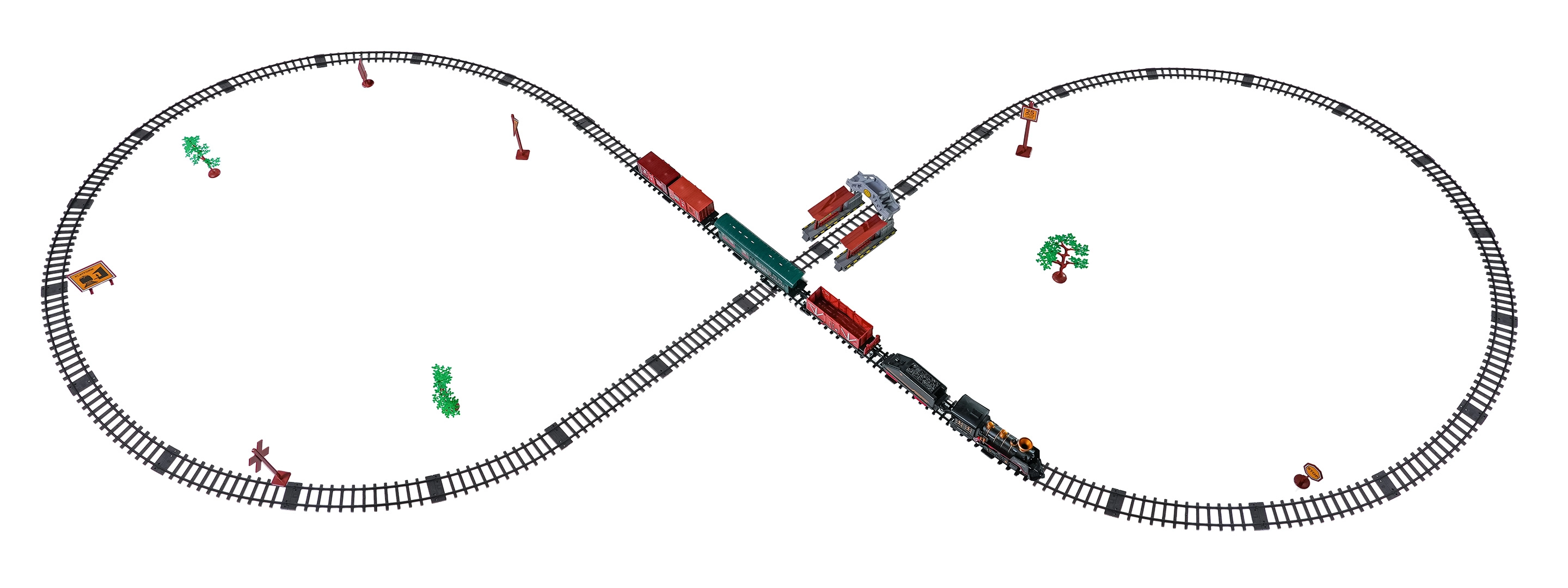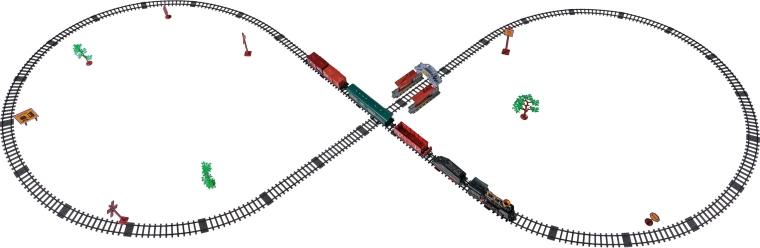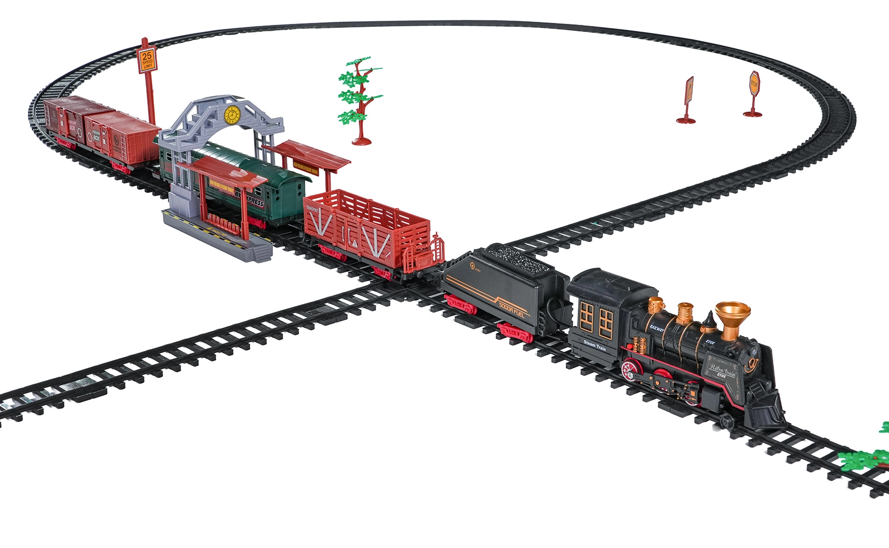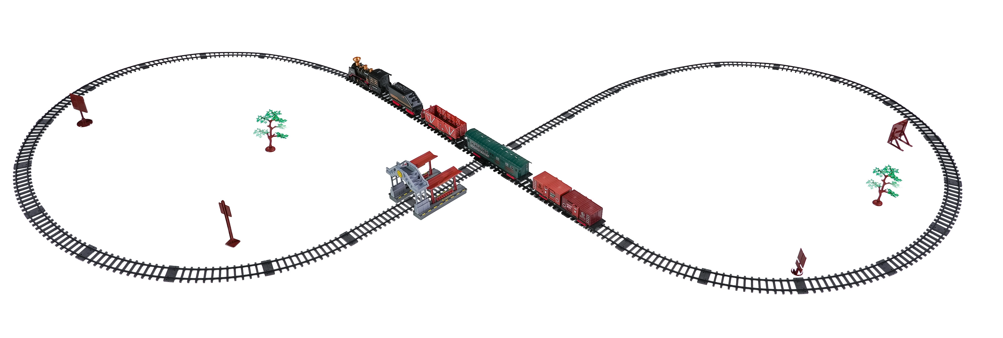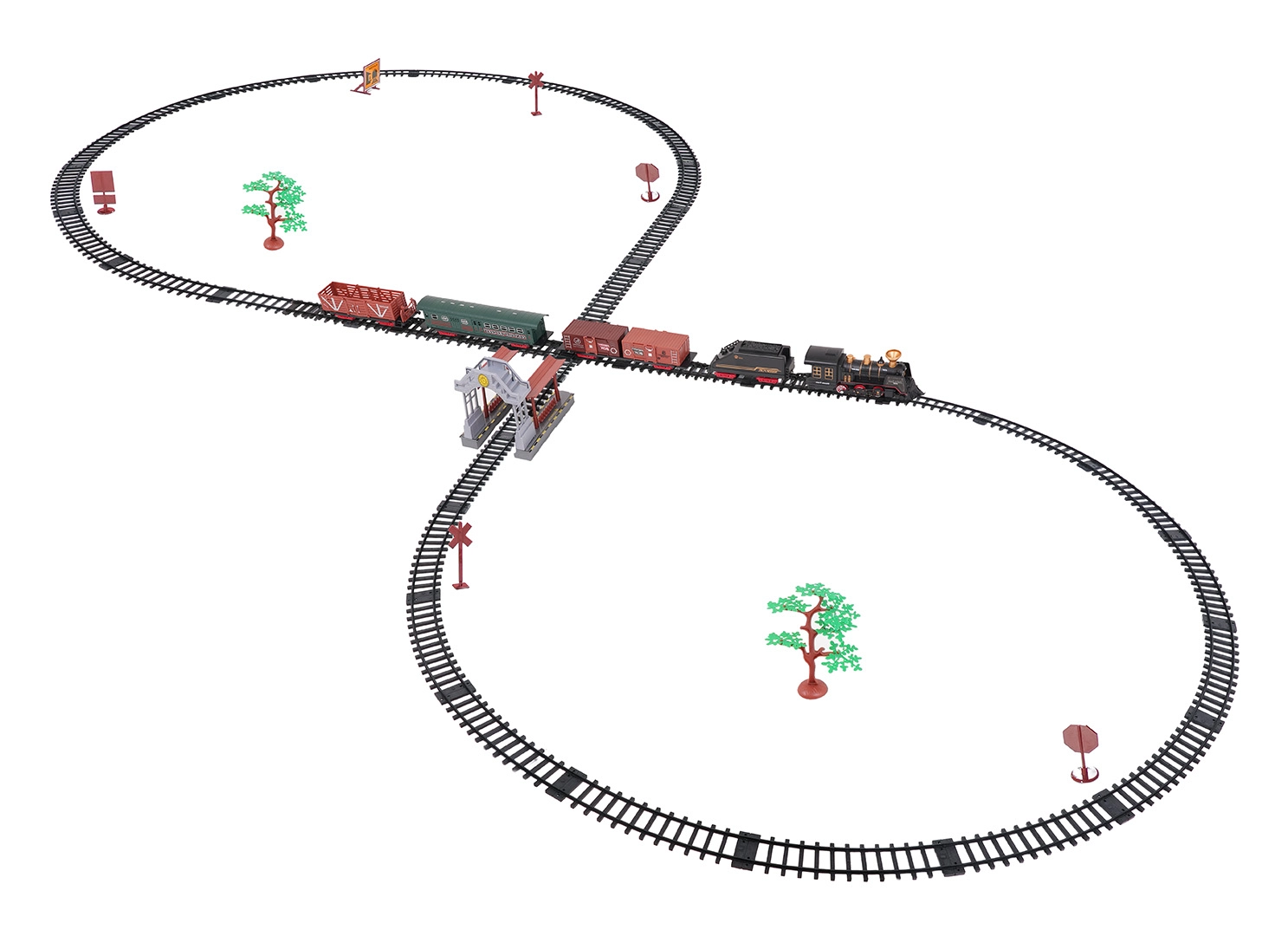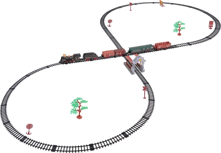 Zum Lieferumfang gehört ein komplettes Zugset mit Lokomotive, Tender, Personen- und Güterwagen, einem Schienenset sowie thematischem Zubehör wie Bäumen und Schildern. Das Set fördert Fantasie, Feinmotorik und Geduld – ideal als Geschenk für kleine Eisenbahn-Fans.