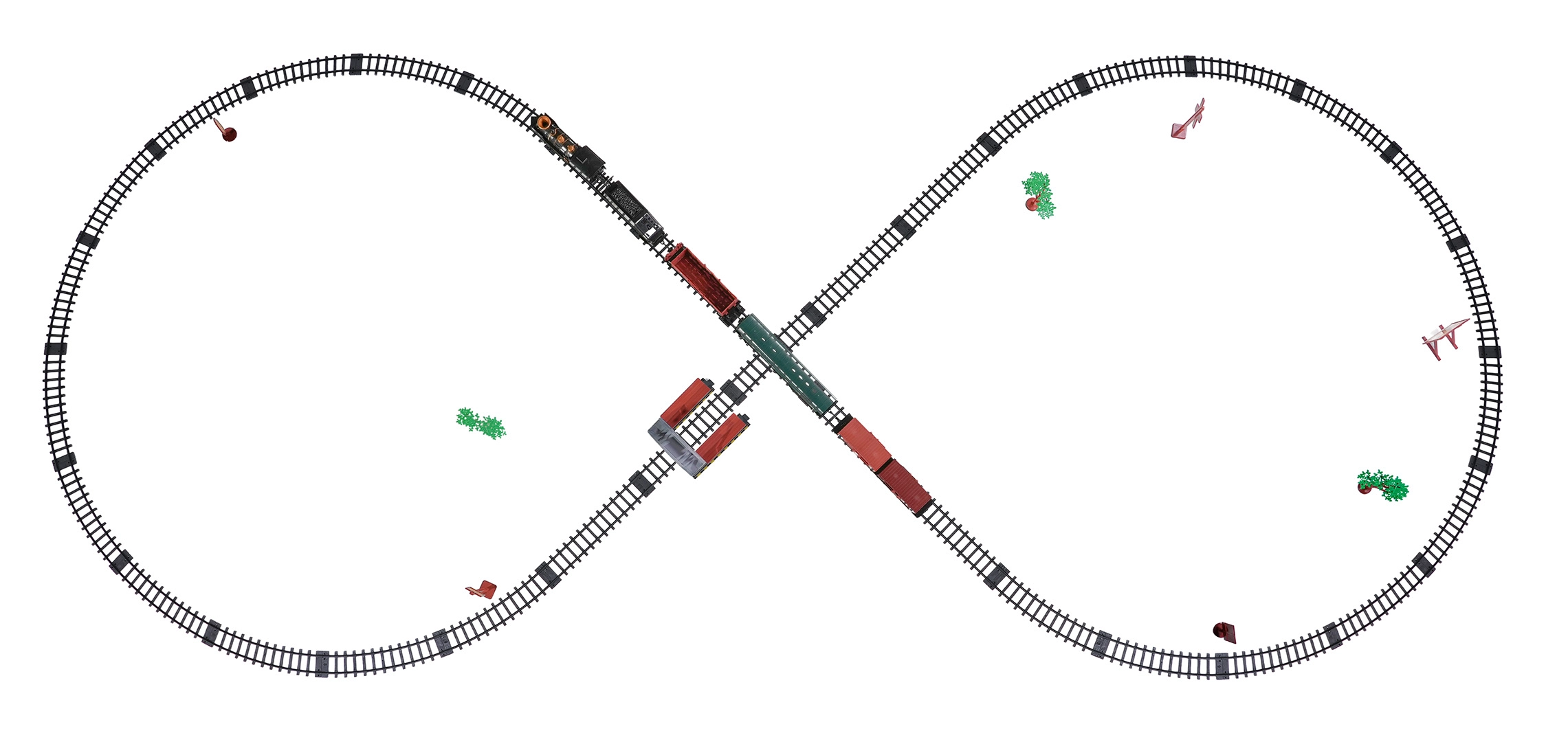 Die modularen Schienen lassen sich sicher und schnell verbinden, sodass Kinder eine große Strecke bauen und sofort losfahren können.