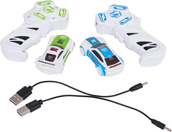 Enthalten sind zwei Hand-Controller für flotte Rennen zu zweit. Die Strecke umfasst mehrere 360°-Loopings, erhöhte Abschnitte und Tunnelsegmente für dynamische Fahrten und Stunts.
