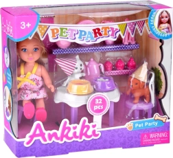 Das Ankiki Pet Party Set verwandelt jeden Tag in eine fröhliche Geburtstagsfeier. Kinder können die Puppe an den Tisch setzen, Tee aus dem rosafarbenen Teeservice servieren, Leckereien und Cupcakes verteilen und sich um die zwei niedlichen Haustiere kümmern – die weiße Katze und den braunen Hund. Pastellfarben und das freundliche Design regen die Fantasie an und schaffen eine liebevolle Spielatmosphäre.