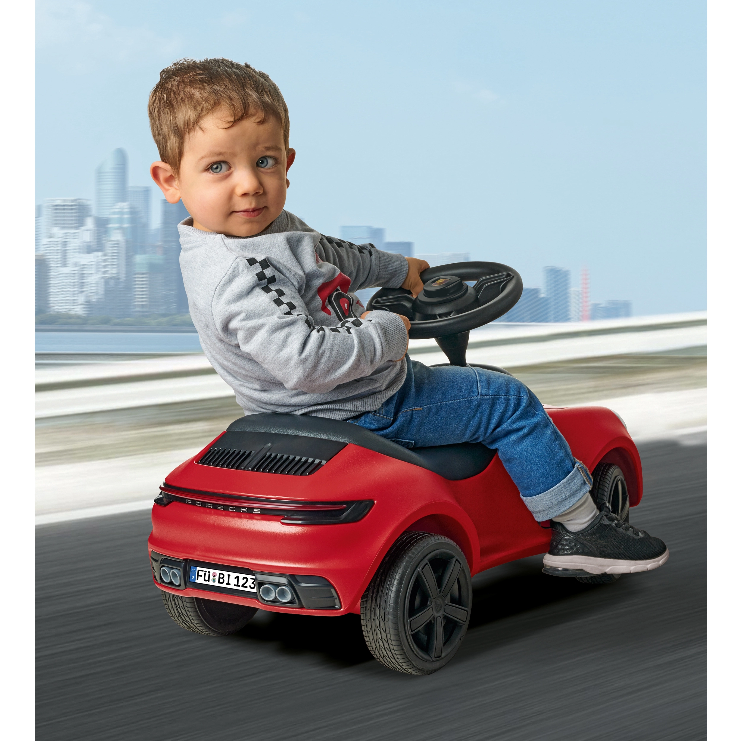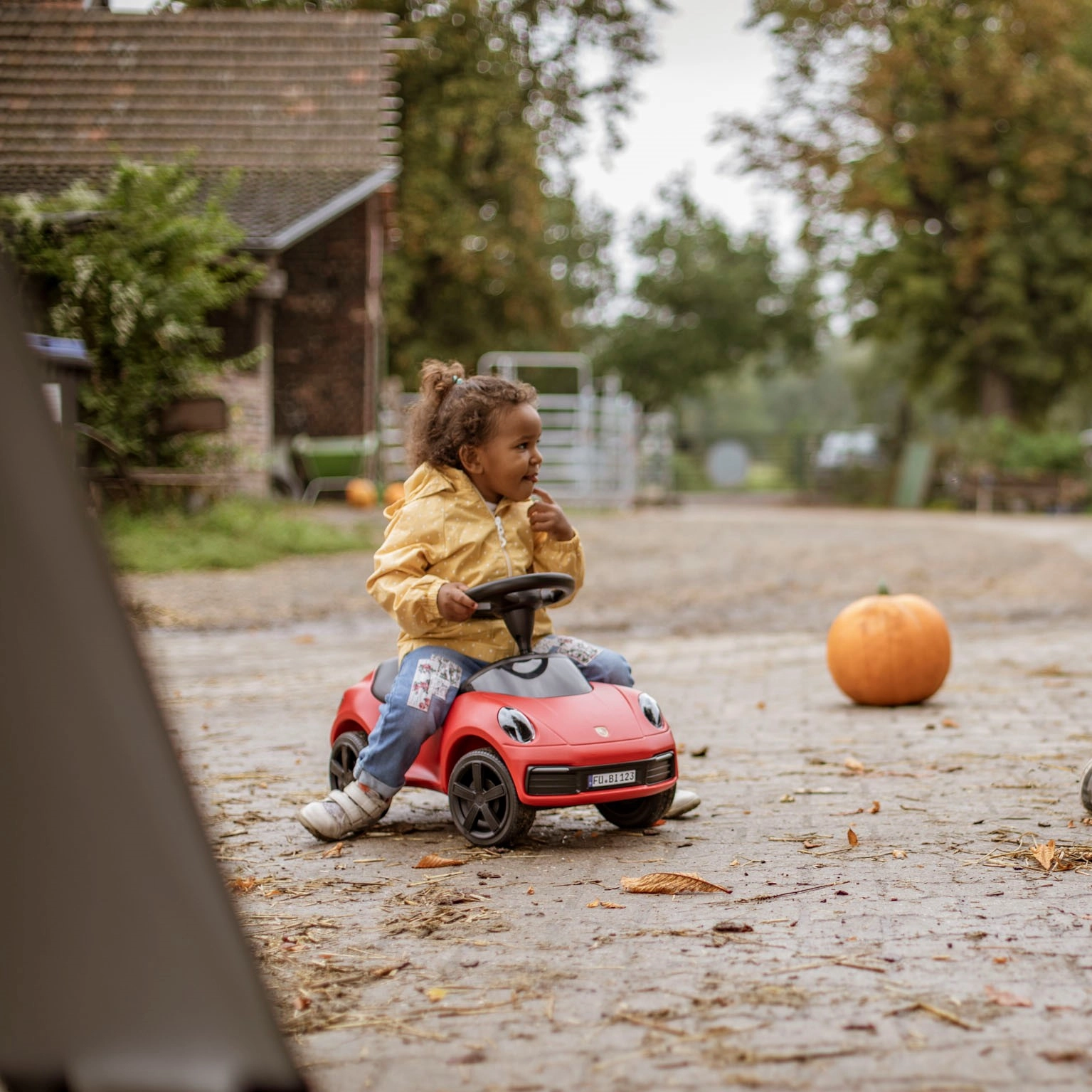 Erleben Sie Spaß und Motorikförderung in einem. Das Rutschauto Porsche 911 ist für die ersten selbstständigen Fahrten konzipiert – Kinder üben Aufsteigen, Absteigen, Abstoßen und Lenken. Der niedrige Schwerpunkt und die breiten Räder sorgen für hervorragende Stabilität, während die leisen Gummiräder Eltern in Wohnung und Garten erfreuen.
