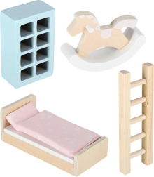 Zweigeschossiges Interieur mit umfangreicher Ausstattung – von Bett und Sofa bis hin zu Küchenzeile, Tischen, Hockern, Regalen und Pflanzen. Kinder können den Raum beliebig umgestalten und eigene Geschichten erfinden.