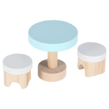 Glatt geschliffene Holzteile mit abgerundeten Kanten, weiche Textilien und Filzaccessoires in Pastellfarben fühlen sich angenehm an und sind ideal für kleine Hände.