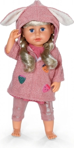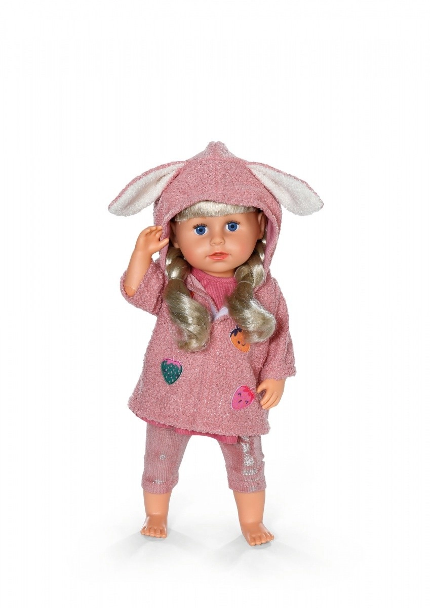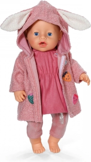 Weicher, strukturierter Stoff und verspielte Applikationen machen das Jäckchen zum Star jedes Outfits. Die Kapuze mit Ohren verleiht der Puppe einen entzückenden Look.