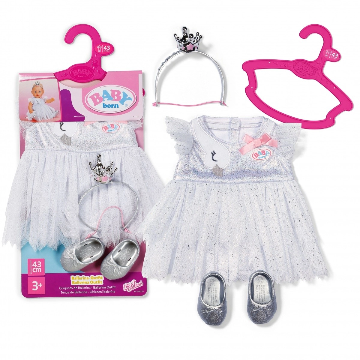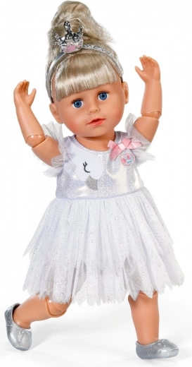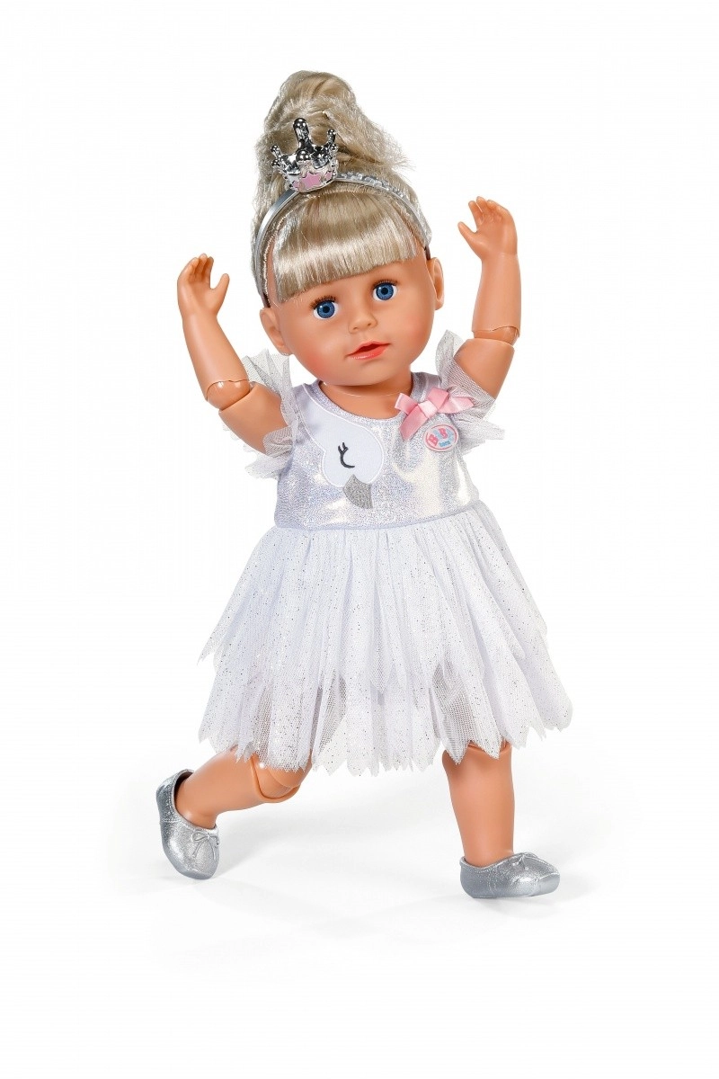Gönnen Sie Ihrer Puppe eine zauberhafte Ballett-Verwandlung. Das BABY born Ballerina-Outfit kombiniert feine Eleganz mit durchdachten Details: glitzernder Stoff, Schwanenstickerei und eine süße Schleife unterstützen jede Kinderaufführung und fantasievolles Rollenspiel.