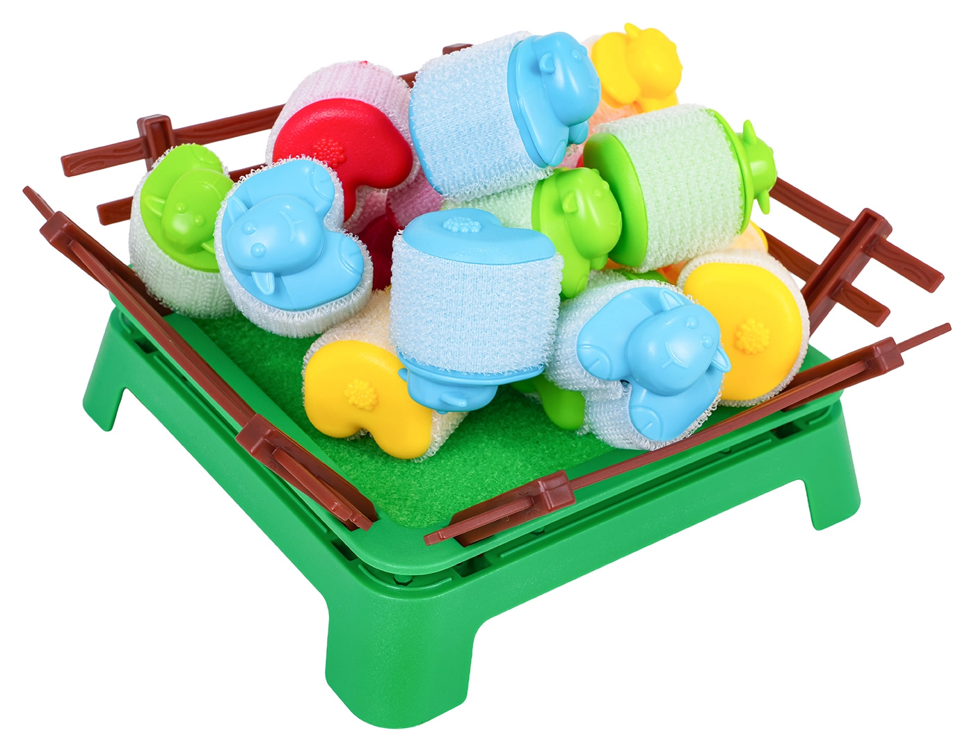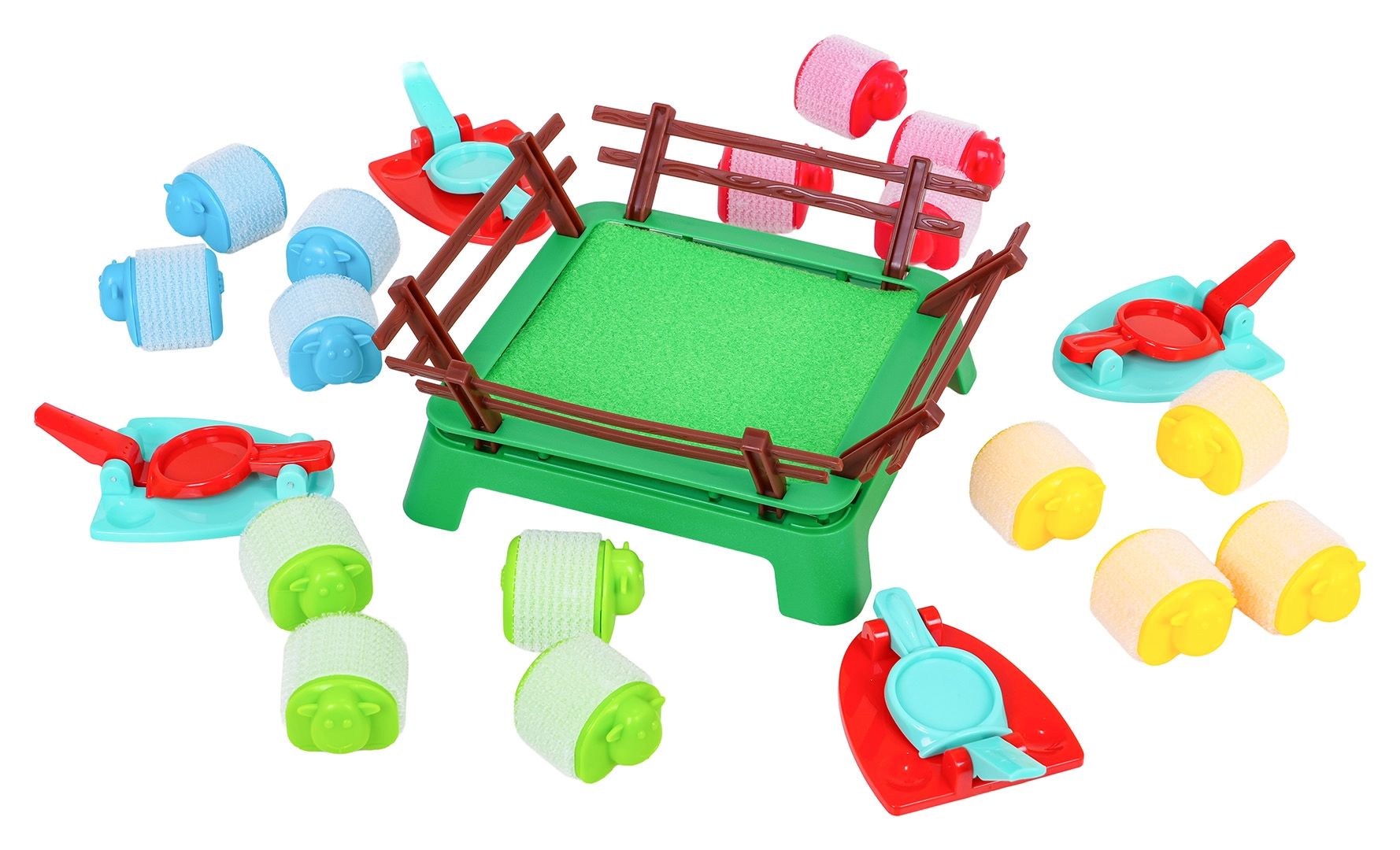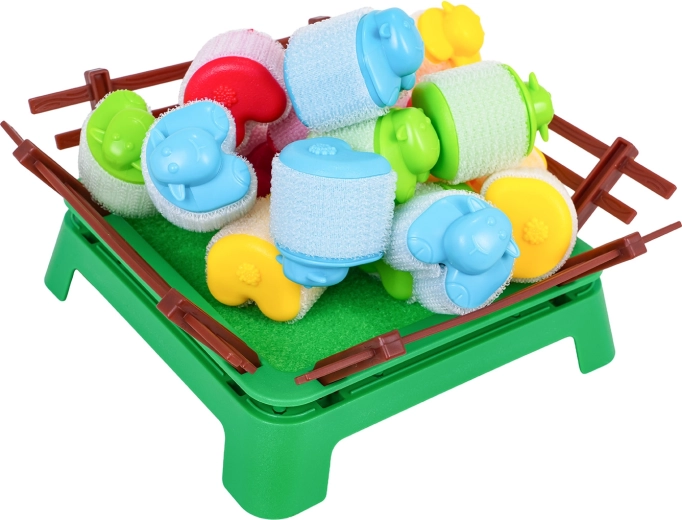 Die Schäfchen haben eine Oberfläche mit Klettverschluss, sodass sie nach der Landung zu stabilen Stapeln „kleben“. Das Set ist kompakt, leicht und ideal für den Tisch – perfekt zur Förderung von Fertigkeiten und für gemeinsame Familienrunden.