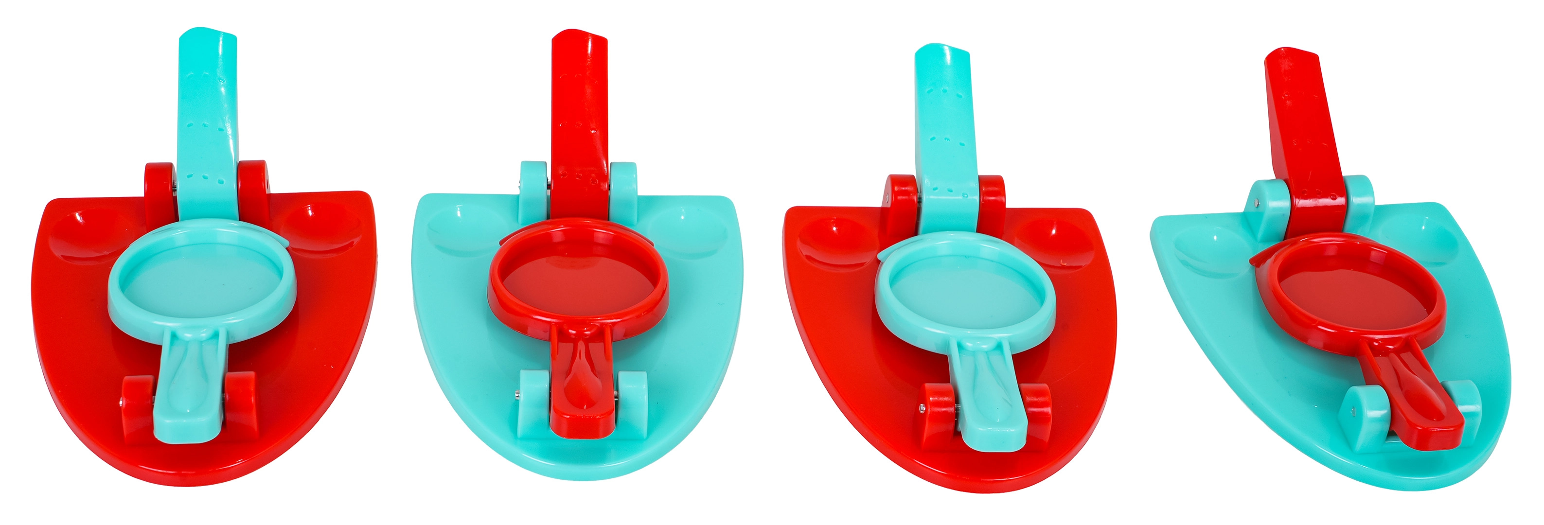 Robuste Kunststoffschleudern mit leichtgängigem Mechanismus ermöglichen Kindern, sicher Genauigkeit und Kraftdosierung zu trainieren.