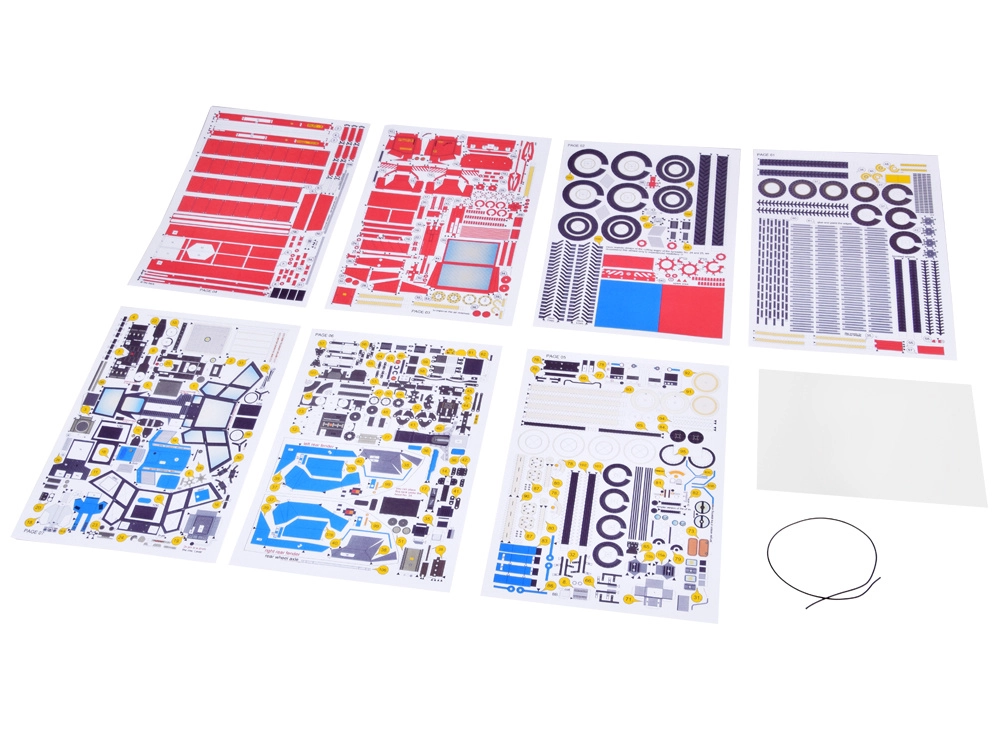 Hinweis: Für das Ausschneiden der Teile wird ein scharfes Modellbaumesser benötigt (nicht im Lieferumfang enthalten). Bei der Arbeit mit scharfen Werkzeugen empfehlen wir die Aufsicht einer erwachsenen Person.