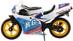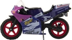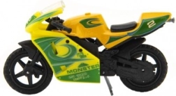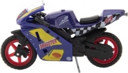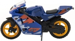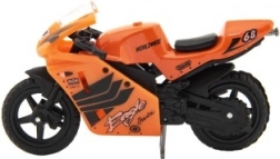 Das Modellrennrad ist 8 cm groß und aus einer Kombination aus Metall und Kunststoff gefertigt. Ideal für Kinder ab 3 Jahren, fördert kreatives und fantasievolles Spielen. Das Motorrad ist auf einer Karte verpackt und in verschiedenen Farbvarianten erhältlich.