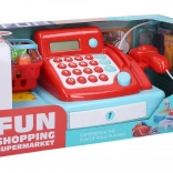 Die unterhaltsame Kinderkasse mit Zubehör sorgt für ein realistisches Kaufladenspiel. Sie bietet Licht- und Soundeffekte, einen Einkaufskorb mit Lebensmitteln und Spielgeld. Die kompakte Größe von 33 × 19 × 14 cm ist ideal für kleine Verkäuferinnen und Verkäufer. Funktioniert mit 2× AA-Batterien (nicht enthalten).