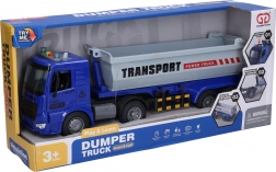 Genießen Sie actionreiche Fahrten mit dem robusten Truck mit einer Länge von 38 cm. Das Modell mit Schwungradantrieb lässt sich mit einem leichten Anschub in Bewegung setzen, während die über die Dachknöpfe aktivierten Effekte dem Spiel Authentizität verleihen. Öffnende Türen und eine funktionierende Kippmulde unterstützen realistische Szenarien auf der Baustelle und auf der Straße.