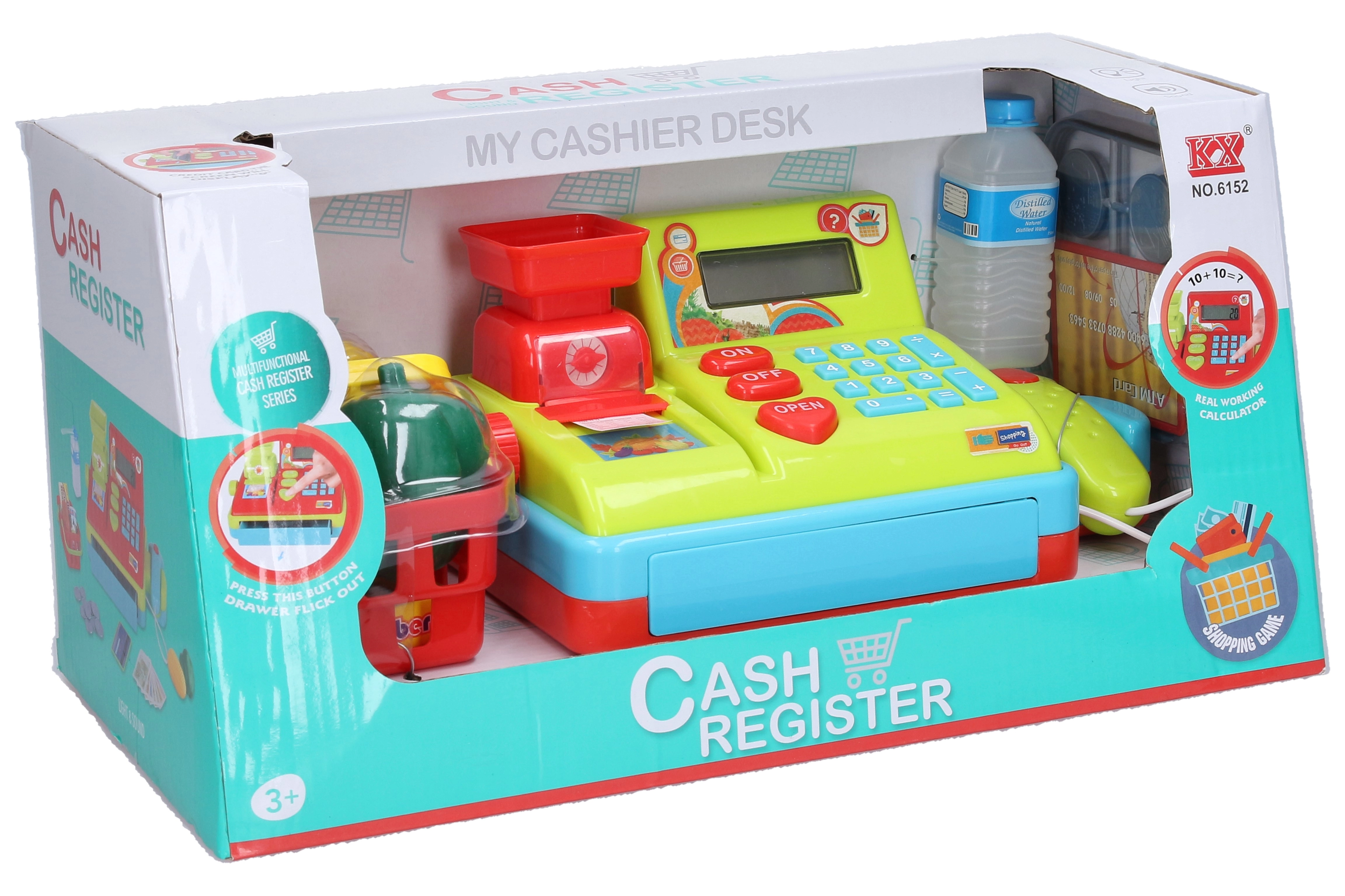 Die realistische Kinderkasse vermittelt spielerisch das Einkaufen und Rechnen. Dank funktionierendem Taschenrechner, Licht- und Soundeffekten sowie umfangreichem Zubehör haben Kinder stundenlangen Spielspaß.