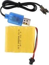 Das Auto wird von einer 4.8V 300mAh Nickel-Cadmium-Batterie betrieben, was häufiges Aufladen während der Spielzeit verhindert. Das Aufladen dauert zwischen 2 bis 3 Stunden. Für die Fernbedienung werden 2x AA Batterien benötigt (nicht im Lieferumfang enthalten).