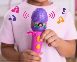 Das Mikrofon mit Effekten DORA ist die perfekte Wahl für kleine Sängerinnen und Sänger sowie Fans der beliebten Heldin. Mit nur einem Knopfdruck starten Kinder bekannte Hits wie „We Did It“ oder „Todo Juntos“ oder hören fröhliche Sprüche, zum Beispiel „That's banana-riffic!“. Die kompakte Größe (19,5 cm) liegt hervorragend in der Hand und fördert die natürliche kindliche Kreativität.
